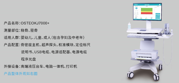 OSTEOKJ7000+超聲骨密度儀是南京科進(jìn)實業(yè)有限公司推出的一款高性價比、覆蓋全年齡段、適用于橈骨/脛骨骨質(zhì)檢測的產(chǎn)品,用于測量人體骨質(zhì)狀況。OSTEOKJ7000+適用于各類醫(yī)療與體檢機(jī)構(gòu),不論對中老年人骨質(zhì)疏松癥還是青少年兒童骨骼發(fā)育狀況,都能提供詳細(xì)的臨床參考數(shù)據(jù)。