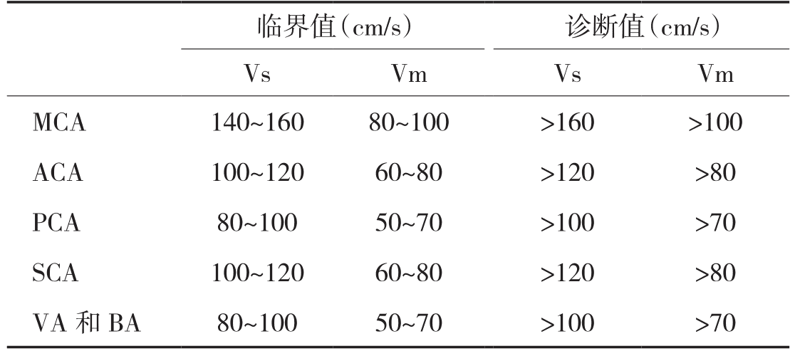 顱內(nèi)血管狹窄血流速度診斷標(biāo)準(zhǔn)表