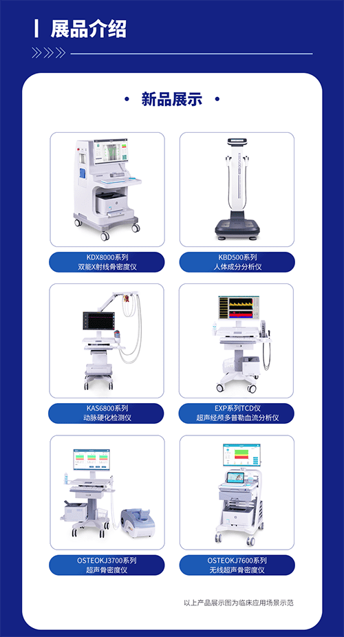 展會(huì)現(xiàn)場(chǎng)超聲經(jīng)顱多普勒血流分析儀、超聲骨密度儀、無(wú)線超聲骨密度儀、雙能X射線骨密度儀、動(dòng)脈硬化檢測(cè)儀、人體成分分析儀等產(chǎn)品盡皆亮相,歡迎蒞臨現(xiàn)場(chǎng)參觀體驗(yàn)。