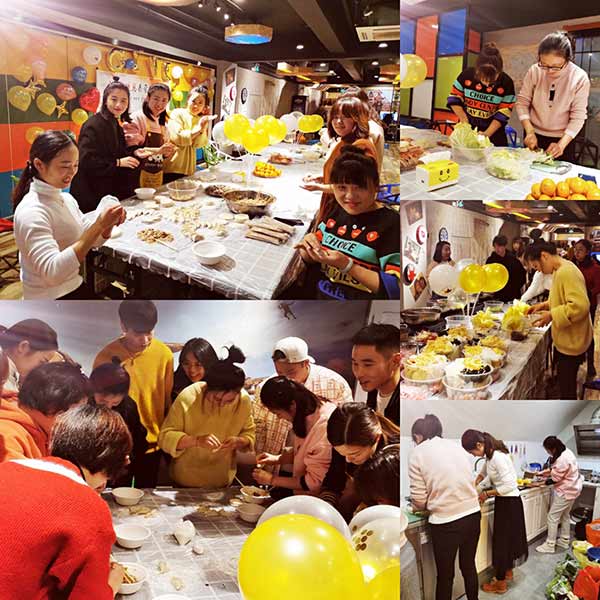 今天,小伙伴們一起做好吃的,有餃子,有火鍋,還有硬菜……這個(gè)過(guò)程中,涌現(xiàn)出了好多能手,黃海鳳的紅燒雞塊…王丹丹的酸菜魚…王玲和任艷柳包餃子,又快又好看……還有我們其他小伙伴,洗菜、切菜、擺盤…動(dòng)作麻利,相互配合著,真是準(zhǔn)備得又快又好。